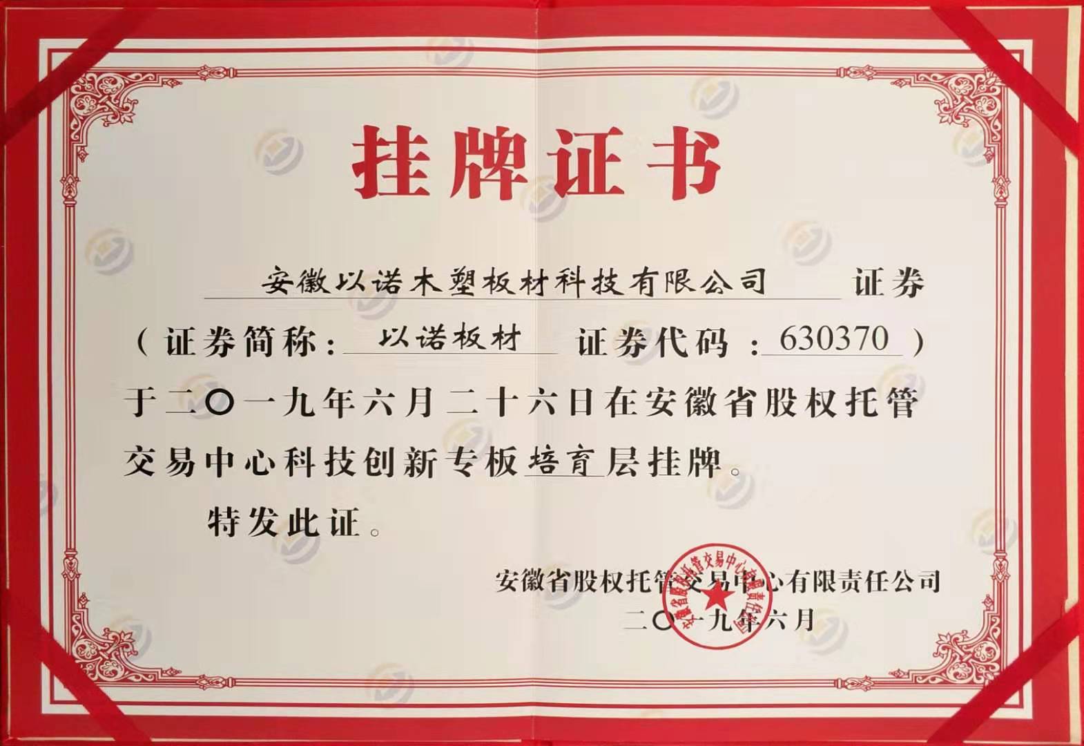 以諾證券掛牌證書 發(fā)布時間:2020-09-07 13:41:19來源:以諾托板 拍下二維碼,信息隨身看 試試用手機掃一掃, 在你手機上繼續(xù)觀看此頁面。 上一篇:先進企業(yè)榮譽證書 下一篇:中國綠色環(huán)保產(chǎn)品